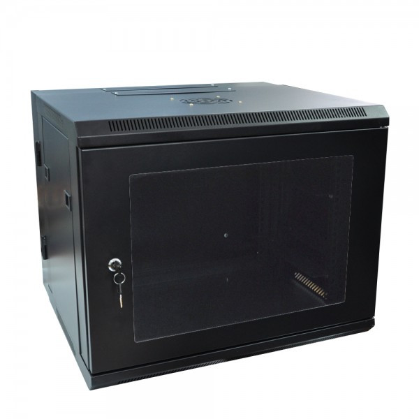 Настенный шкаф 18U, несъемн. бок. стенки, дверь стекло, черный