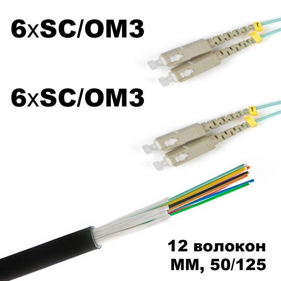 УНОП-STD-OM3-SC-SC-12-20m, 20 метров, Универсальный, 12, волокон, Многомод 50/125 ОМ3, SC-SC, UPC-UPC, OM3, Черный.