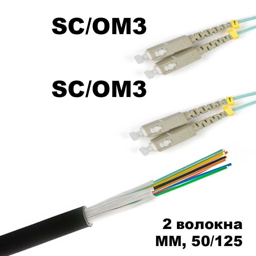 УНОП-STD-OM3-SC-LS-2-300m, 300 метров, Универсальный, 2, волокна, Многомод 50/125 ОМ3, SC-SC, UPC-UPC, Duplex, OM3, Черный.