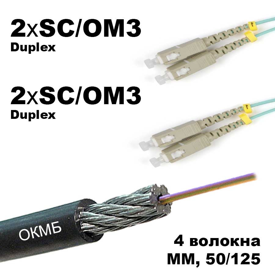 Уличный бронированный оптический патчкорд, 8 волокон, 100 метров LC-LC, MM, 50/125 OM3, многомодовый, MultiMode